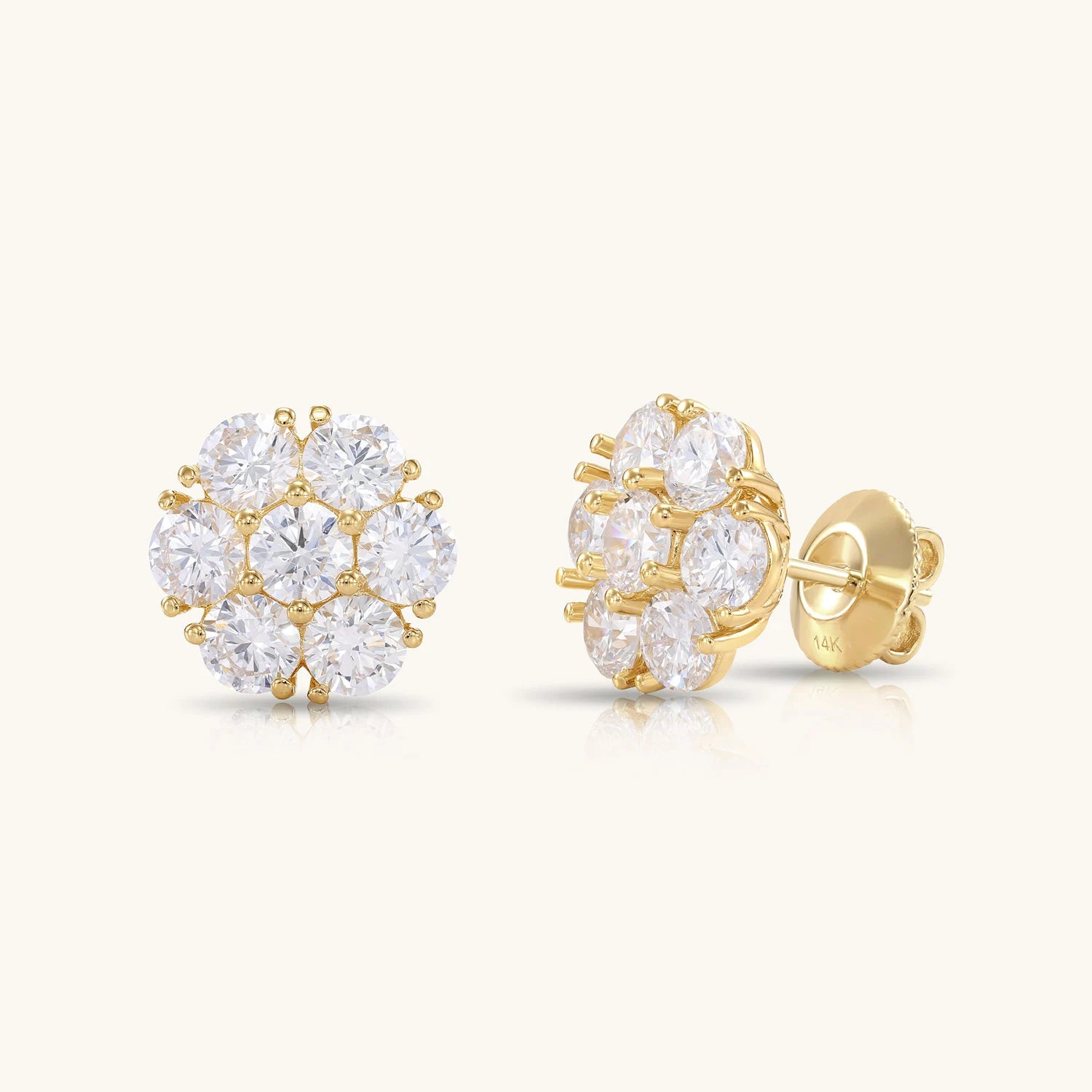 14k gold and Cluster Stud Earrings - solid gold lab grown diamond flower cluster earrings with 3.50 carat of lab grown diamonds, ideal for everyday wear and a must-have for women’s jewelry collections.